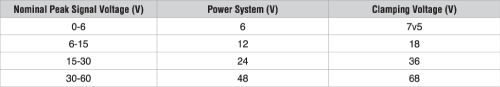 Table 1 on page 60 provides common signalling protocols and the appropriate Novaris SPD for each application. Even if the actual protocol is unknown the peak signal voltage must be determined.2. Select the clamping voltage